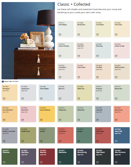 The Classic & Collected palette includes nostalgic hues like Carnelian, Neutral Ground, and Cocoa Whip.
