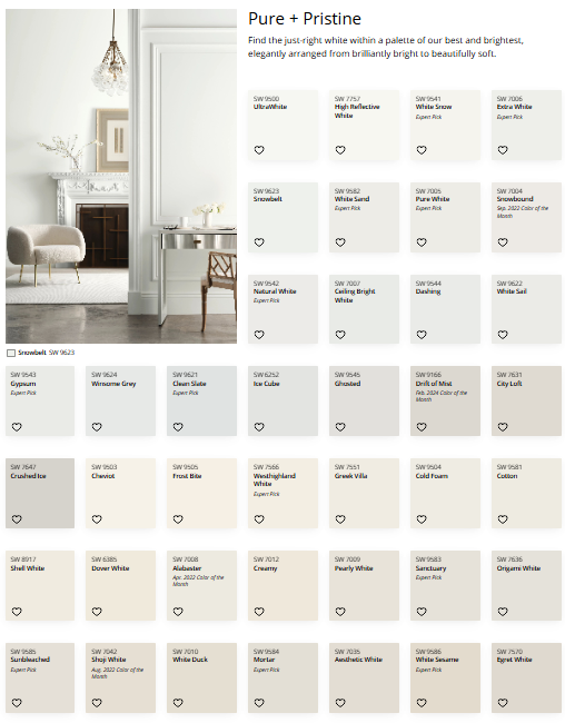 The Pure & Pristine palette leans into clean whites and soft neutrals.